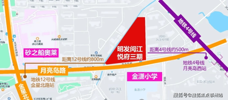 地铁:地铁4号线月亮岛西站,本次推售三期住宅离地铁站更近约500m,离地铁12号线(规划中)约800m