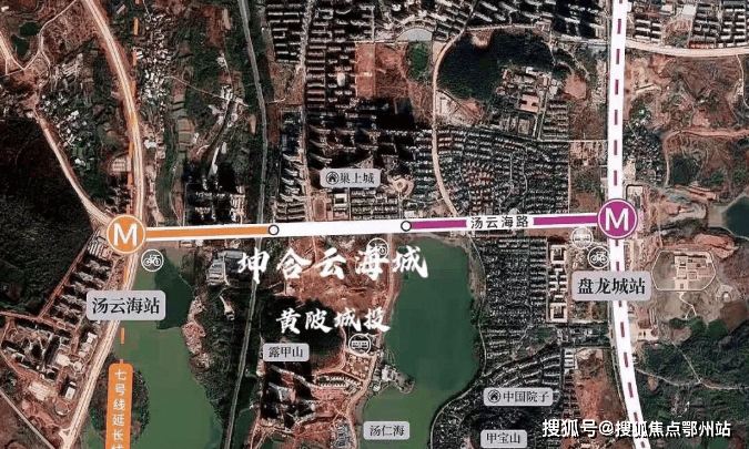 云海城位于盘龙城经济开发区(盘龙大道汤云海路),既是武汉地铁2/7号线从武汉内环进入黄陂的门户,也处于盘龙城与临空国际商务新城的中心位置,享双城核心配套。项目南靠150亩露甲山,东拥2000亩汤仁海景观湿地,北向面朝汤云海路,东接盘龙大道,西接临航城大道、机场高速,快速联动武汉三镇,链接武汉内环、盘龙城、临空国际商务新城的经济朝向,未来发展与增值潜力无限。