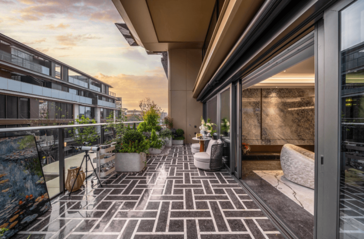 在如此大尺度的露台面前,市面上曾风靡的双联阳台、跑道式阳台,都瞬间黯然失色。