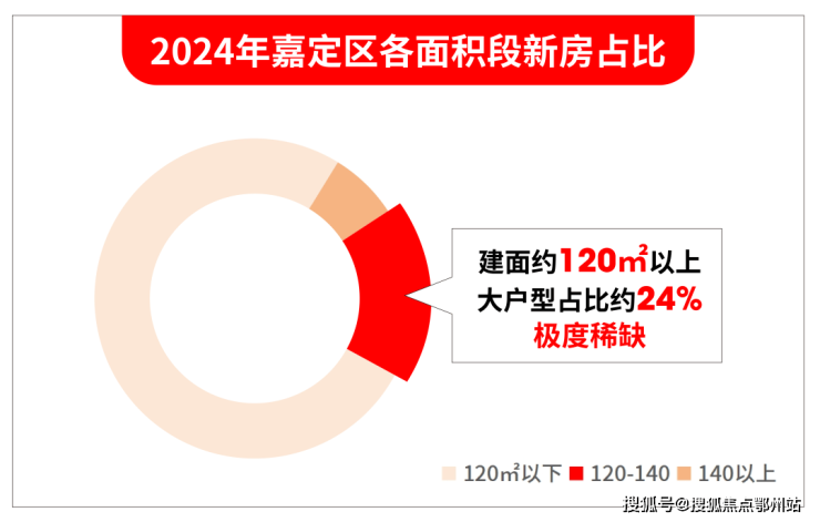 整个嘉定目前还是以百平米左右3房为主力供应段,建面约120㎡以上的产品今年仅占比约24%,极度稀缺。