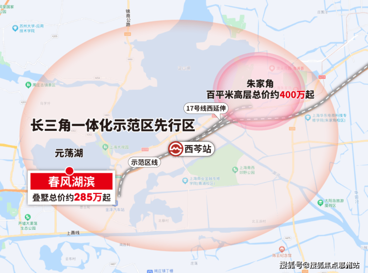 并且周边有示范区线+17号线西延伸(均已开建)两条轨交,可乘坐示范区1号线到达上海地铁17号线东方绿舟站。