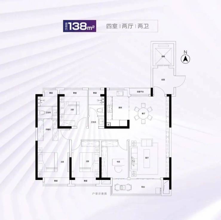 方正格局:全明阔绰四室、约13.4M南向四开间,打造尊荣生活格局