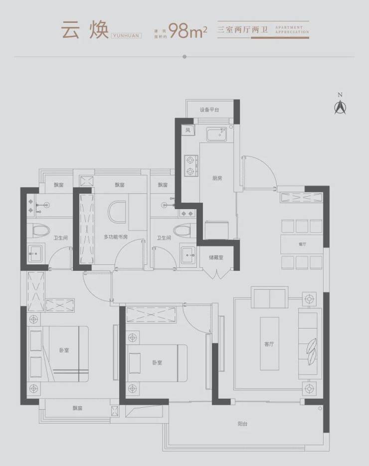 雅致三房:满足三口之家所需,北向房间可改造书房,理想生活一步到位