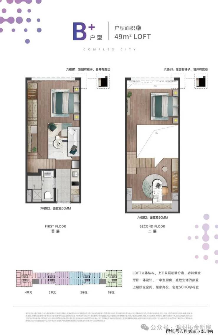 LOFT双钥匙设计:4.2米层高,实现“一层价格,双倍空间”,适合自住+投资双需求。