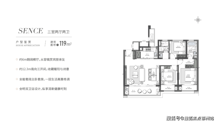 洋房:11栋(8-10层),主力户型 158㎡四居(南北双套房,270°双联阳台)