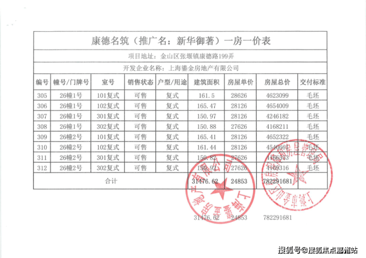 【一房一价表】