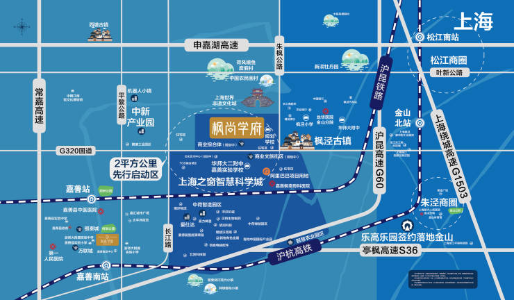 项目距离上海金山高铁北站约9KM,乘坐高铁约18分钟直达上海虹桥,距离嘉善南站约13KM,乘坐高铁约23分钟直达上海虹桥,快速便捷出城;