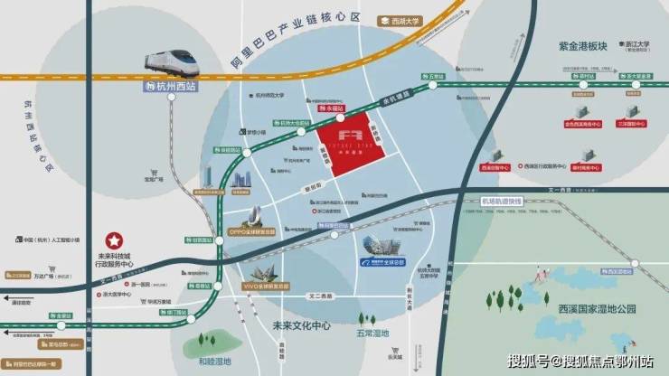 项目位于杭州“第三中心”——未来科技城核心,为地铁5号线永福站地铁上盖综合体项目,北临余杭塘路,南临联创街,西临聚橙路,东临新桥路。未来科技城作为新进的“杭州第三中心”,比肩武林和钱江新城的新中心。这里不仅是杭州城西科创大走廊产业聚集的创新极核,更是杭州高净值人群及独角兽企业的聚集地,是杭州走向世界的时代引擎。