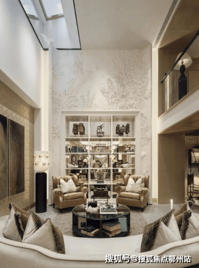 约117㎡地下层 :会客休憩之余,别墅还有专属家族兴趣空间。极致挑高并附带夹层,采光天井引光入室,通透场域可打造私人藏品陈展区、雪茄吧、茶室、家庭影院或瑜伽健身房等,营造更多立体化的生活场景。