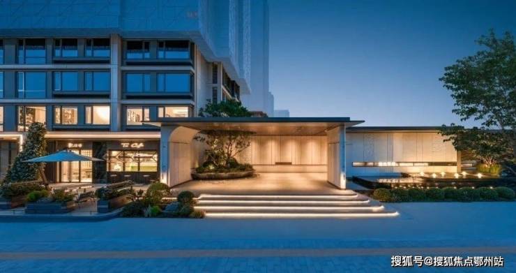 金色飘檐擦亮辨识度,南立面以大面玻璃主打,白、金、蓝灰为主调,配合部分涂料;基部用上了贝金米黄大理石,温润如月光。