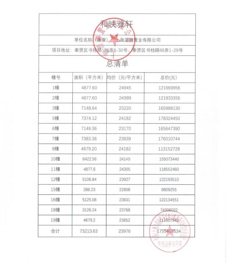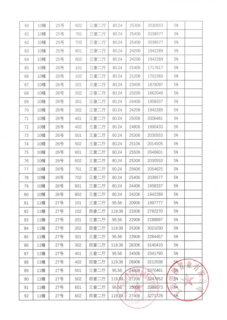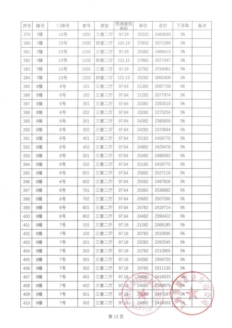 一房一价表