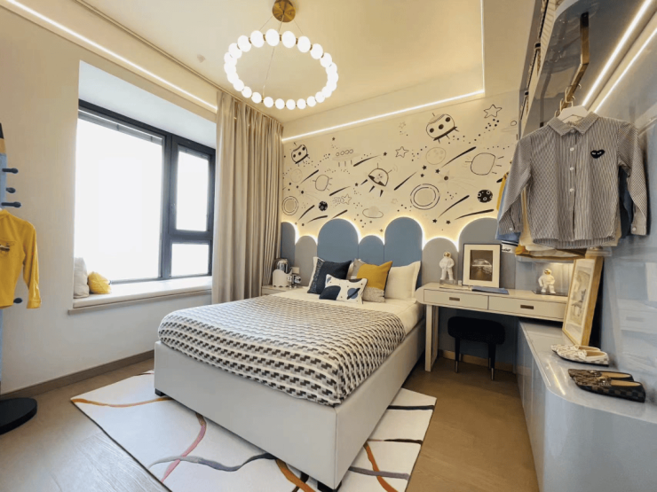 「大名城·映园」园林景观以“璀璨星城,繁星映园”为主题规划广阔绿地空间,将园区每一处都延伸出不同理念分区设计,打造双轴双环七景,给予社区四季变幻的鲜氧秘境;定制多重归家礼序,让归家成为一场行走于星空之上的风景之旅。
