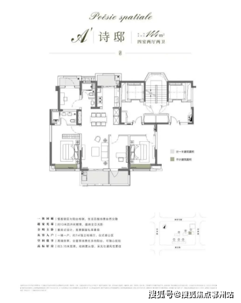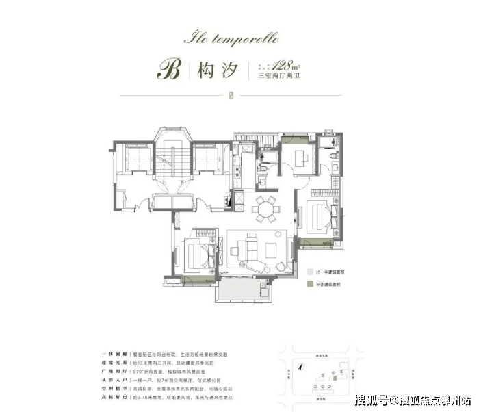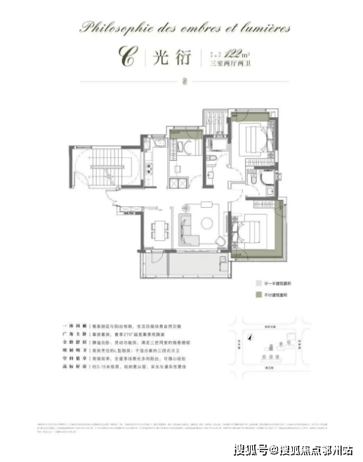 项目以116㎡户型为起步,纯粹改善型社区,所有户型都做到了约3.15米的层高,