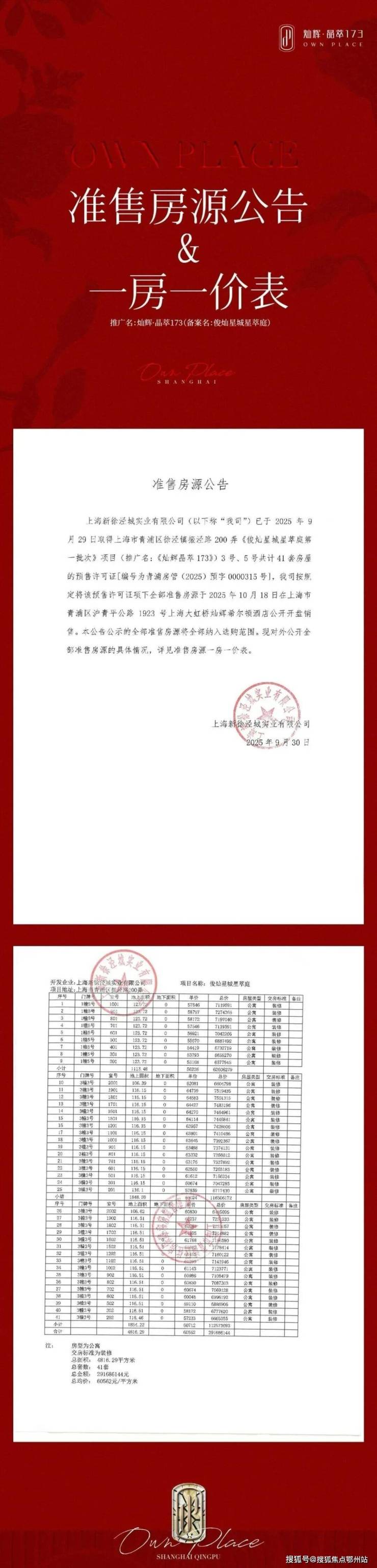 灿辉·晶萃173项目一房一价表: