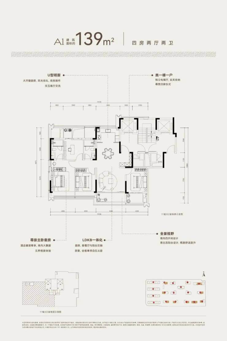 【户型面积】高层建面约139~190㎡、叠墅建面约230~263㎡