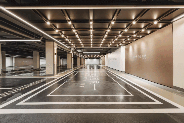 地库内部整体典雅 金色搭配简洁线条,化繁为简的美学张力,让每一次归来优雅而奢适。更有 矩阵式星空顶行列式排布上方,将东方秩序之美从奢宅、园林贯穿至地库。