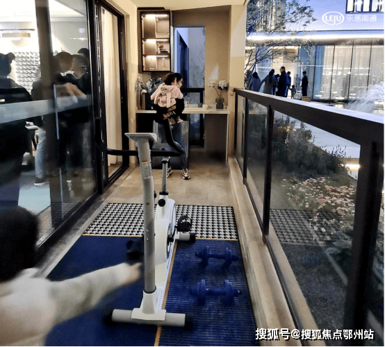 有人看到阳台对面的健身房,不禁问顾问,交付时是否有?顾问表示,这就是 实际交付的健身房。后期售楼处所在将作为物业用房,健身房也在其中。