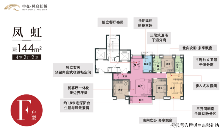 F户型 | 4室2厅2卫 | 建筑面积约144㎡