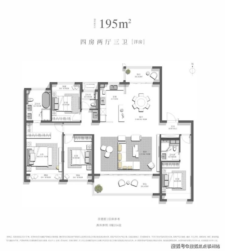 建面约195㎡,四房两厅三卫[洋房] (售罄)