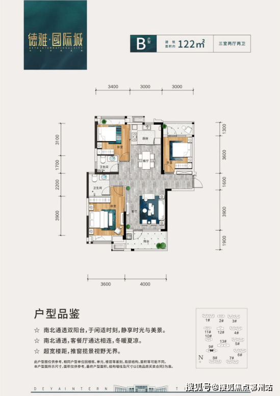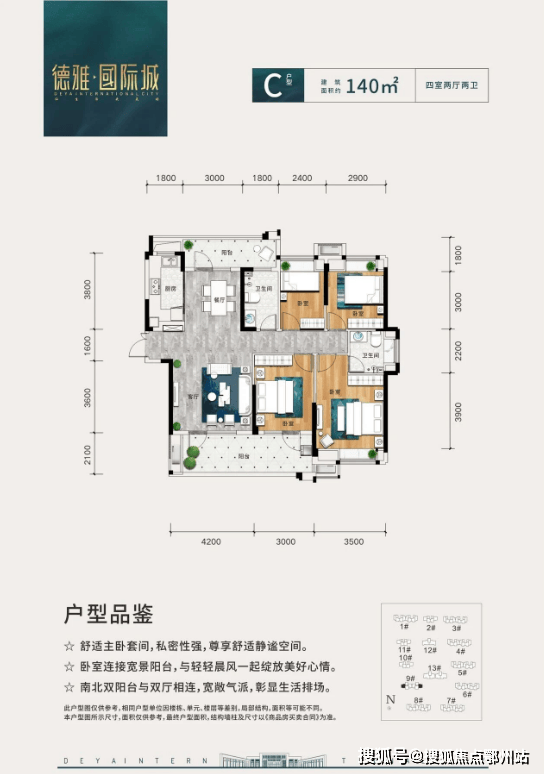 德雅国际城地处新老城区交汇处,紧邻阳逻之心,地理位置优势明显。目前在售四期12#、13#楼,即将加推四期6.7.8.9栋,区间面积约110㎡-140㎡,项目图册和户型图如下:
