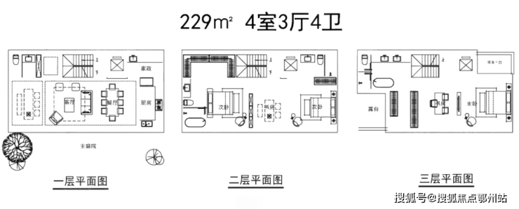 一层:独门独院入户,打造独栋式归家仪式感。会客厅、厨房与灵动空间构成家庭社交核心,大面积落地窗成点睛之笔,最大限度引光入室。预留大面宽耳房可改造为独立套间,满足多样化需求;1-3 层贯通梯与电梯井(预留)设计,最大化减少空间浪费。