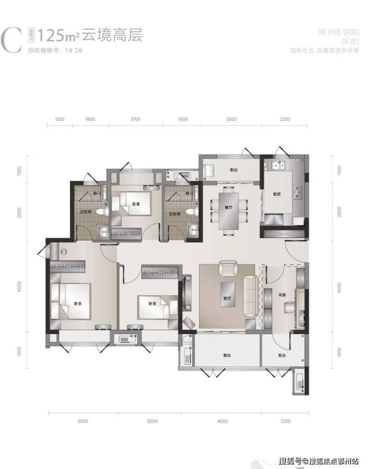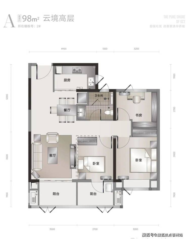 2#楼,32F,底层架空,户型为建面约98-125㎡;