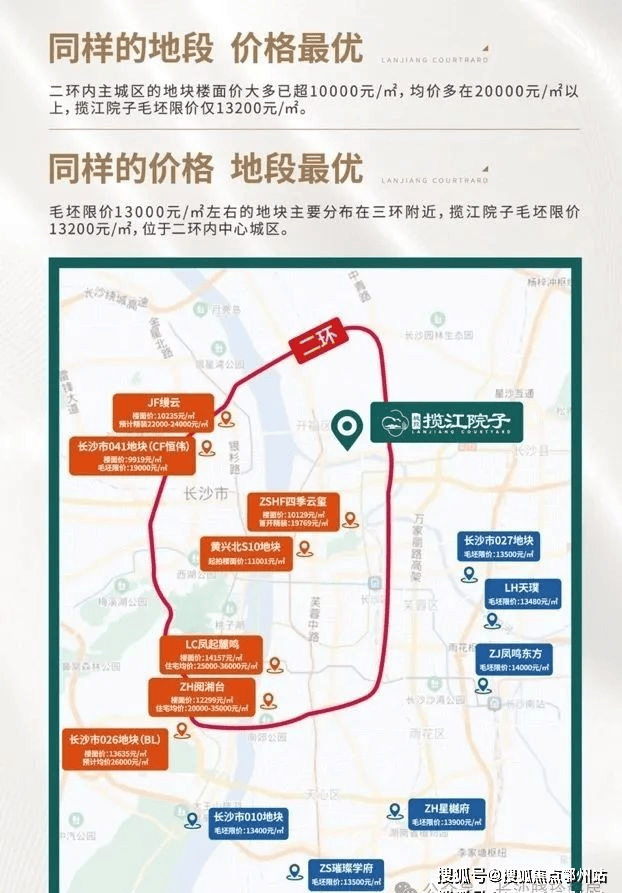 如今二环内主城区的土地价格大多已破万,最新挂牌的S10地块起拍楼面价已经达到11000元/㎡,本案作为主城区瞰江花园大平层,毛坯限价仅13200元/㎡,与主城区地价齐平,同样的地段,本案价格更低。而同样住宅限价13000元/㎡左右的项目基本都分布在三环边,同样的价格,本案价格更低。