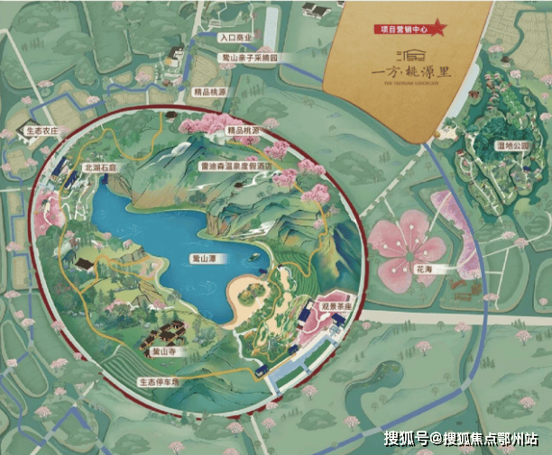 鸷山桃花源是由中新集团倾耗资40亿,耗时7年倾力打造的2400亩田园山水小镇,拥有湿地公园、农田花海、枯山水景、温泉酒店等度假设施,当之无愧现代桃花源