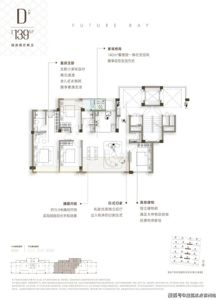 大四房,南向四开间,面宽达15.9米,采光更是优越,就连2个卫生间,都有明亮窗户,空间通透。