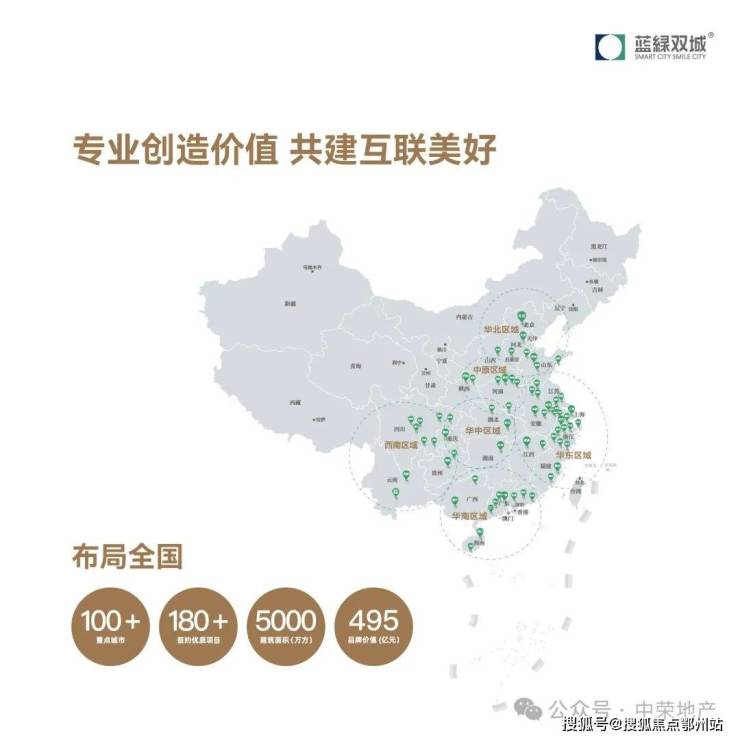 中国城市建设、城市运维、城市服务行业引领地位,进驻全国100余座重点城市,签约优质项目超过180个,服务面积超过5000万