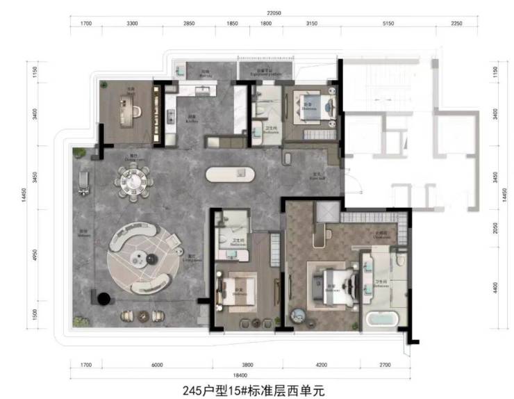 承袭“天字系”高阶改善的豪宅基因,取法泰国曼谷安缦酒店设计精髓,以弧形元素+连续横向线条的变化,描摹建筑黄金比例。