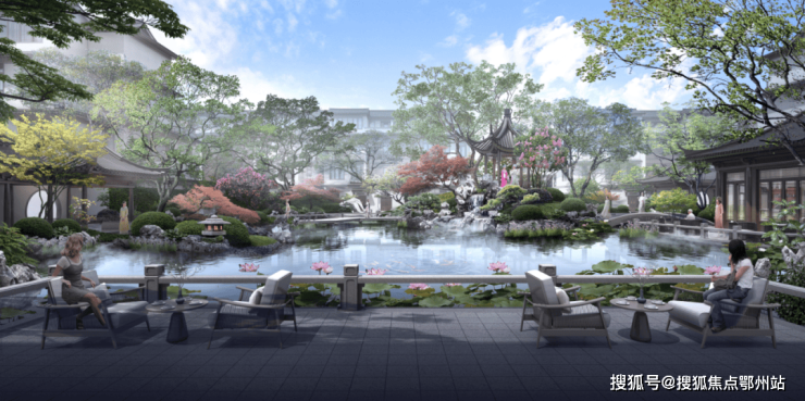 在景观上: 以宋式园林“潇湘宋园”与“五法十境”为基,桥、廊、瀑、松、石、花等元素相融,层层递进的山水画境,让每一步都是诗意享受。