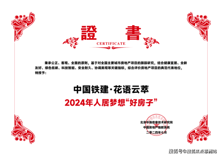 中指研究院于5月启动了2024年人居梦想“好房子”研究与优选工作,优选出重点城市和区域的“2024年人居梦想‘好房子’”,花语云萃项目荣获“2024年人居梦想‘好房子’”。