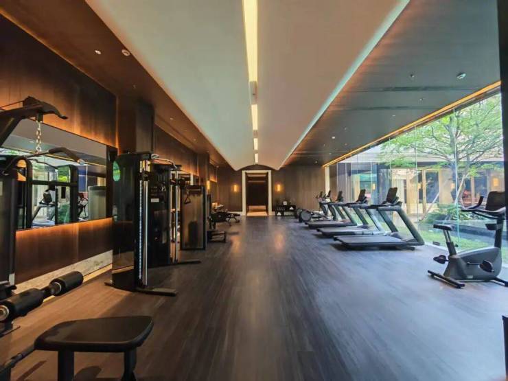 健身房配备喜来登同款必确Precor设备, 全可开合落地窗 直面下沉庭院!业主在跑步、慢走的运动中,可以看到庭院的景观,更能呼吸到来自室外的新鲜空气,创造更愉悦的运动体验。