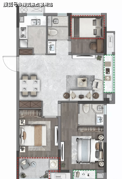 卖点:边套,三面采光,南北通透,客厅带大面宽飘窗,主卧带飘窗带独立卫浴