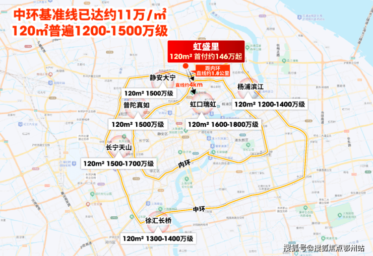 即便与同区域相比,优势同样突出——直线距离仅4公里的虹口瑞虹板块,120㎡房源总价已达 1600-1800万级,虹盛里的差价接近一半,这样的性价比在市场中罕见,为资产安全筑牢基石。