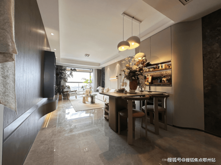 餐客厅阳台一线贯通,动线流畅,弧形阳台拓展景观视野。