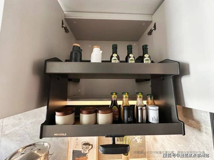 采用 顶天立地高柜设计,嵌入电器的同时,通过透明密封罐统一收纳干货杂粮并贴标存放于拉篮内,容量充足可叠放约8个山姆款家庭装零食大礼包;并将备餐区下方的抽屉升级, 配置碗碟拉篮、分区调味拉篮,实现 “一拉到位、一目了然”,可满足6-8人份碗筷收纳需求,吊柜搭配升降拉篮解决高处取物难题。