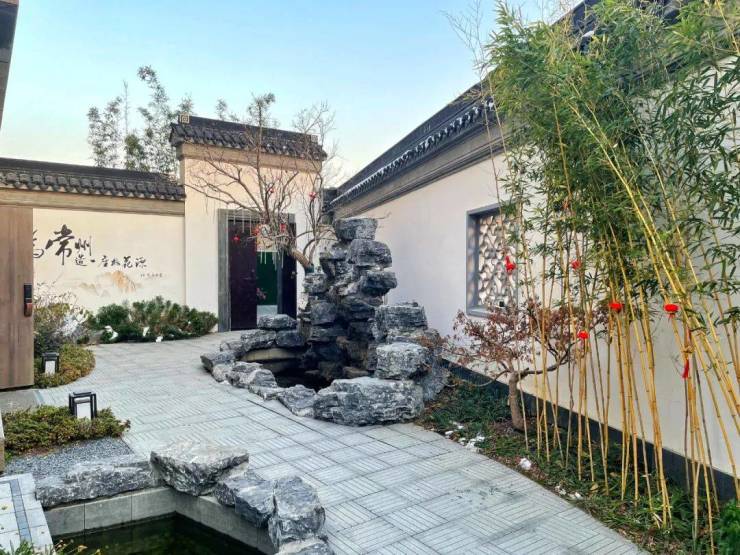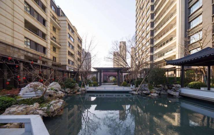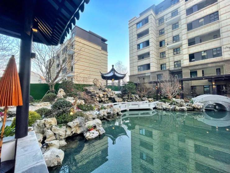 可以说在桃花院子小区内部,完全可以充分体会到那种尽得江南园林之精髓的雅致风格。 假山叠水、亭台游廊,小桥之下的溪流,缓缓铺开自然原生水系的灵动。