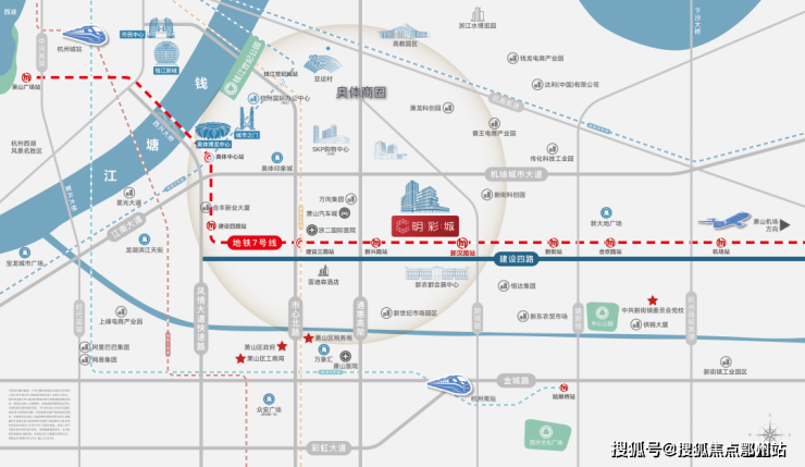作为杭州市萧山区建设四路与新吉路交叉口的黄金地段,众安明彩城是奥体东板块的一颗明珠。该项目地理位置优越,毗邻地铁7号线新汉路站,距离地铁站仅150米。