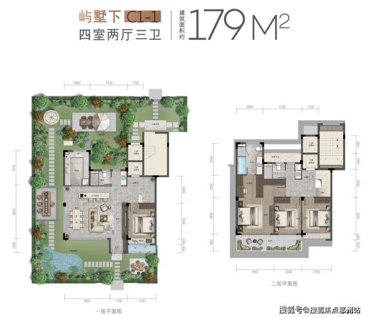 云檐里给出了下叠建面约165方、上叠约170方和上下叠约179方这4款主力户型。