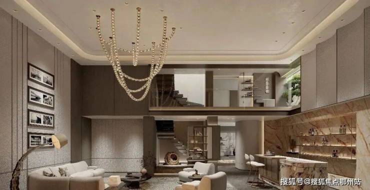 其中,南入口约52米面宽超级界面, 钻石雕刻星光穹顶 ,门头整体采用沉香米黄石材为主题色调,中间 大面奢石作为背景 ,提升整体奢品格调,匹配太湖湾人物身份。
