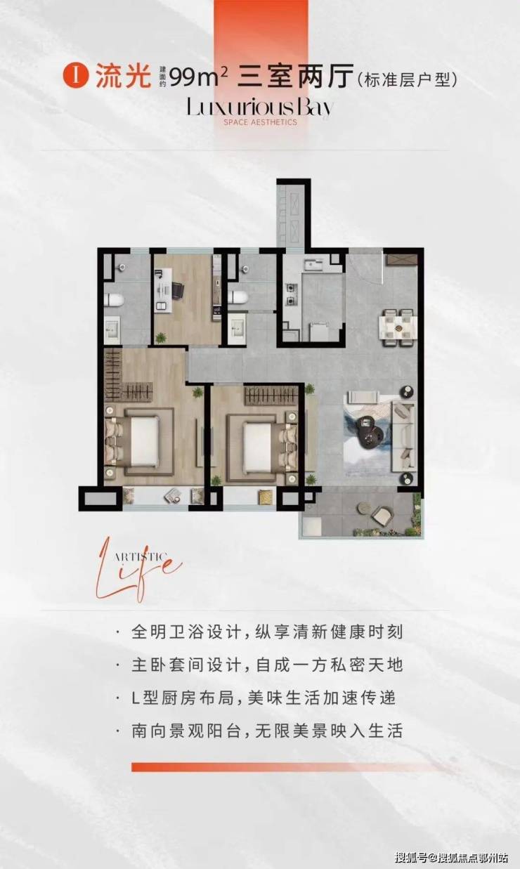 建面约99-139㎡ 精装高层,尽享奢阔面积和超高得房率,匠心研磨动线流畅的厨房、主卧套间、全屋收纳系统等一系列精质细节,主卧套间设计尽显从容优雅, 阔绰尺度灵活空间,满足家庭全周期成长。