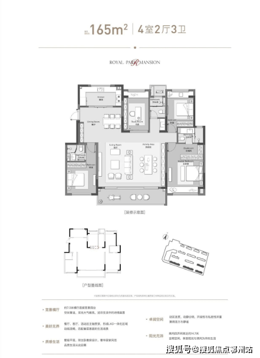 【户型】高层115/135㎡,中高140㎡,洋房166/189㎡大平层,全明多开间户型,且洋房双套房设置,户型产品力较强