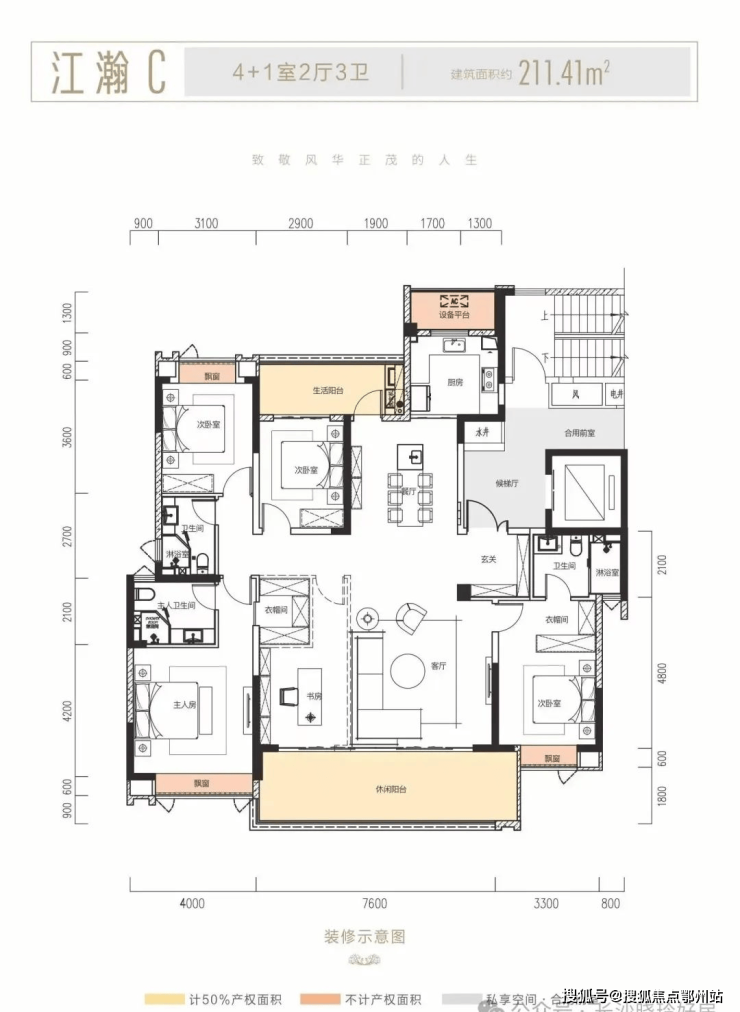 ----- 5#栋 约211㎡4+1室两厅三卫 ------