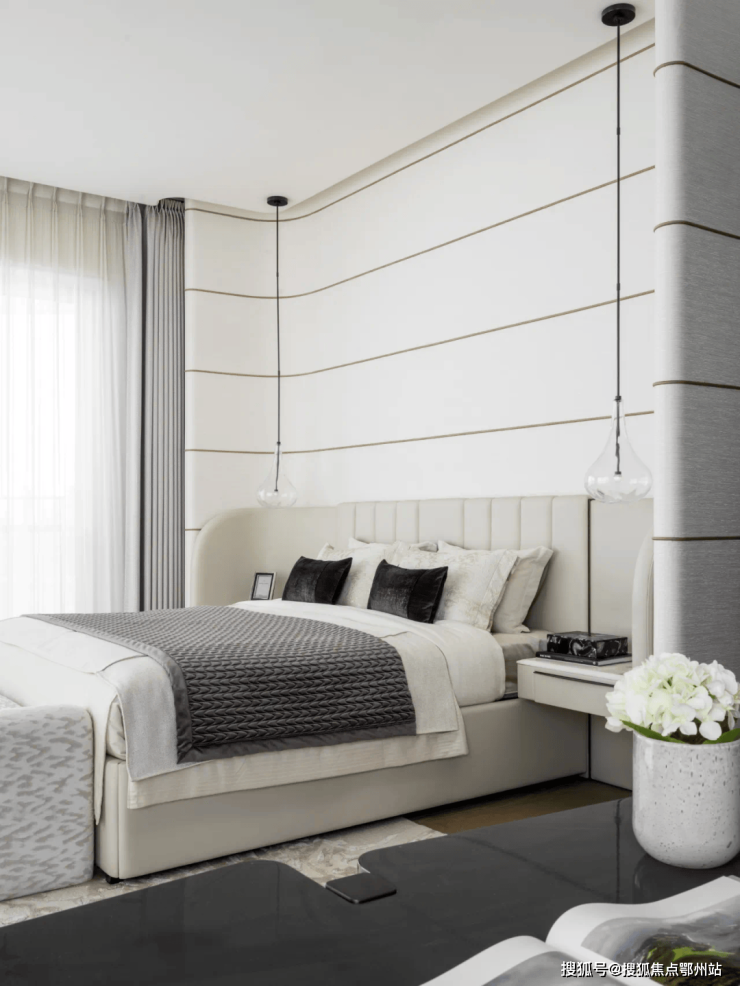 底部以石材和金属结合的曲线异形巨柱抬高建筑体量,构筑了廊柱与动态景观空间,既满足了尊贵的入户大堂需求,又释放了底层空间的潜力,进一步提升了低层住宅的采光效果和视野范围,从而营造出更为宜人的居住环境。