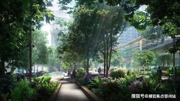 开放式“城市绿桥”直达滨江水岸将下沉广场、活动空间,并且与滨江漫步道贯穿连接,融合城市界面与社区界面,每一栋建筑都仿佛自然生长在这里。