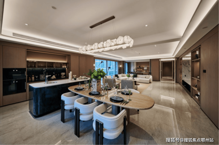 中间套的客餐厅更是达到约100㎡,一张12人的大圆桌也有充足的空间优雅转身。周末约上好友来聚会,给主人赚够了颜面。