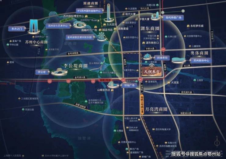 背依斜塘老街时尚街区,紧邻邻里中心,向东约1km(一站地铁)奥体中心,向西约1.5km邻瑞广场山姆超市、向北约2.5km圆融时代广场、久光百货、IFS苏州国际金融中心。沿中新大道与金鸡湖隧道直达苏州中心。