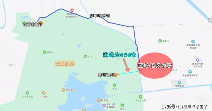 而 春风如意地处海盐县澉浦镇田元路与南北湖大道交叉口,北靠凤凰山,南面则是南北湖国家AAAA级风景区。